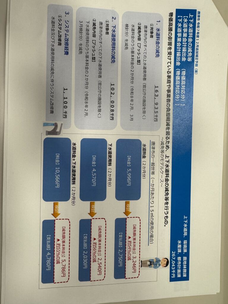 12月議会では、国の物価高対策の第1弾として、水道料金の減免を実施することが決まりました。