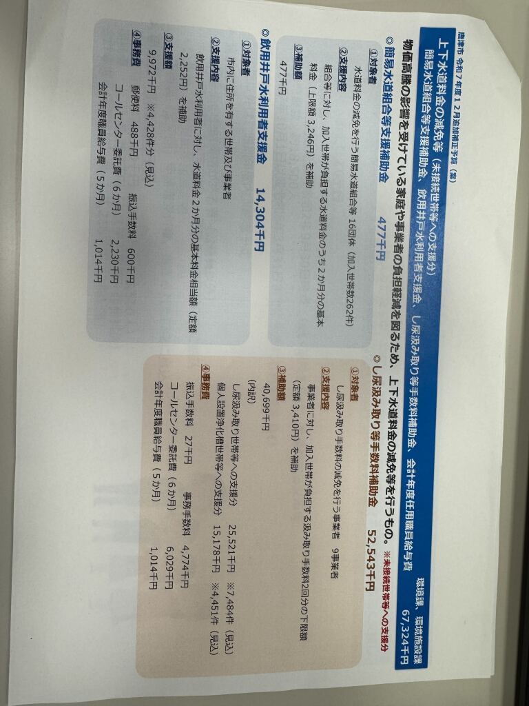 物価高の中で、議会で何を決めたのか今回の1月臨時議会では、国の「物価高騰対応重点支援地方創生臨時交付金(約15億5800万円)」のうち、残額約12億7千万円を活用し、物価高対策を段階的に進めています。
