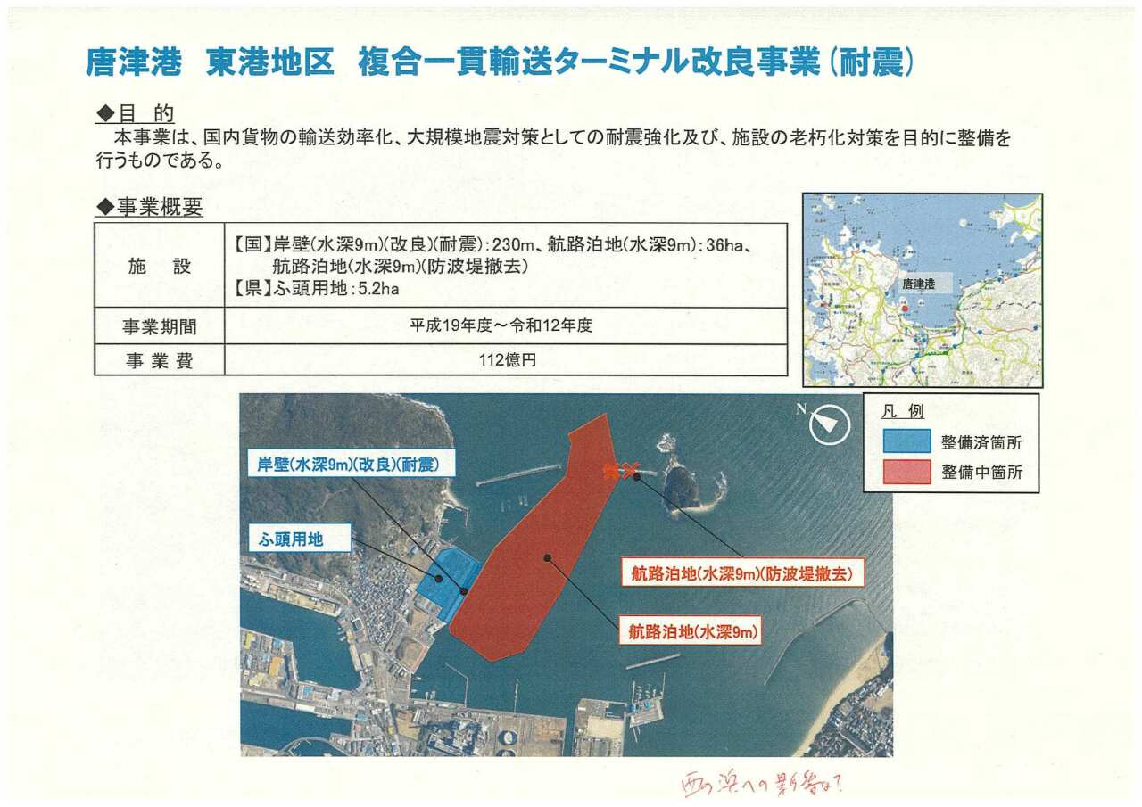 また西の浜エリアには唐津市「KMAP(唐津マリンアクティビティーパーク)」構想もありこちらも水質汚染が内容に依頼しております。
