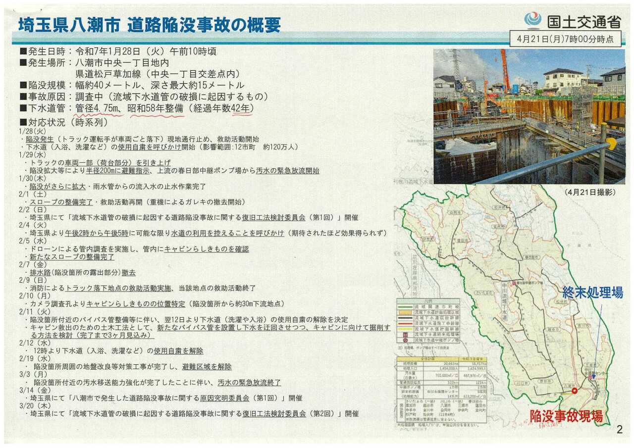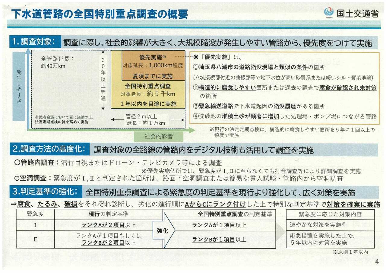 唐津市の下水道の管路は直径2m以下なので上記の対象になってはいませんが、埋設後40年ほど経っておりますので、是非とも事故の内容に点検等も確実にしてもらいたいです。